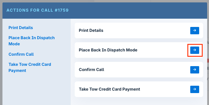 - If the vehicle has a lien process started, the process will have to be Terminated before you can continue. Placing the call back in Dispatch mode will remove any reconciliations and if you use tow tickets, the tow ticket number for the call. Make sure you write down the ticket number so you can put it back in when you Complete the call again.